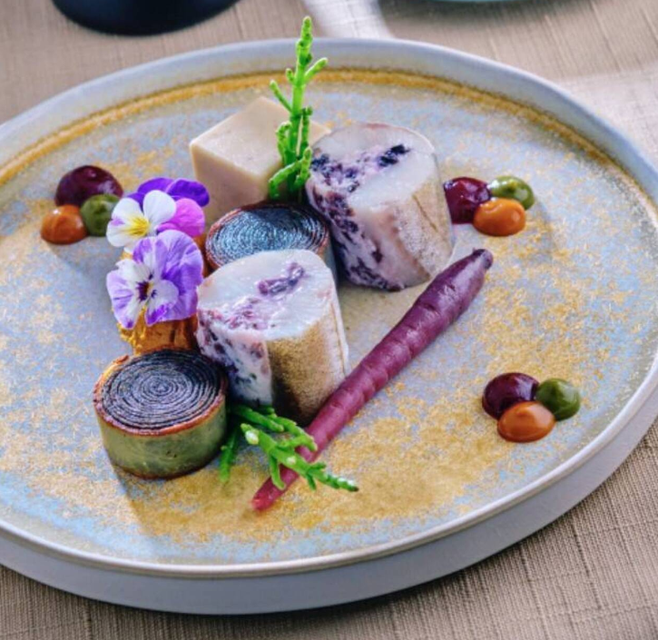 La cuisine de Sylvain Bourmaud célèbre les produits avec finesse et caractère, sans jamais les dénaturer. Entre terroir et audace, ce chef, entre terre et mer, met à l’honneur le savoir-faire des producteurs locaux, cultivant dans l’assiette contrastes et alliances harmonieuses.